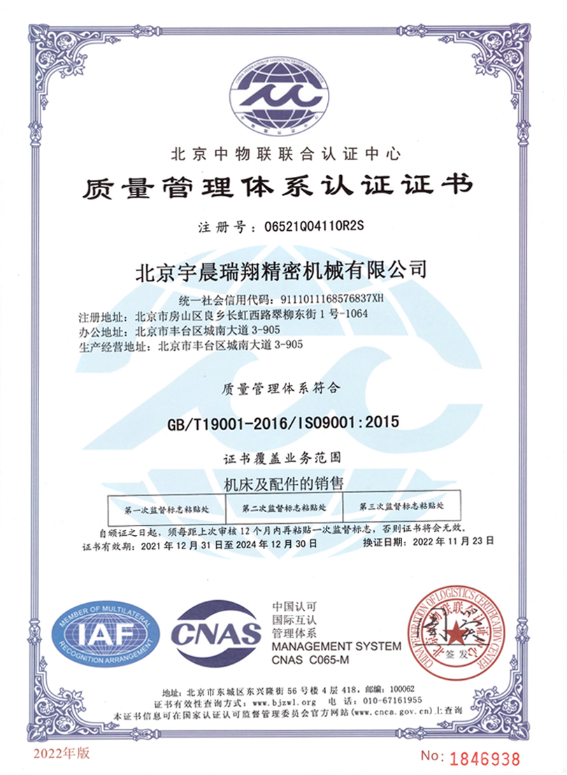 ISO9001质量管理体系认证证书